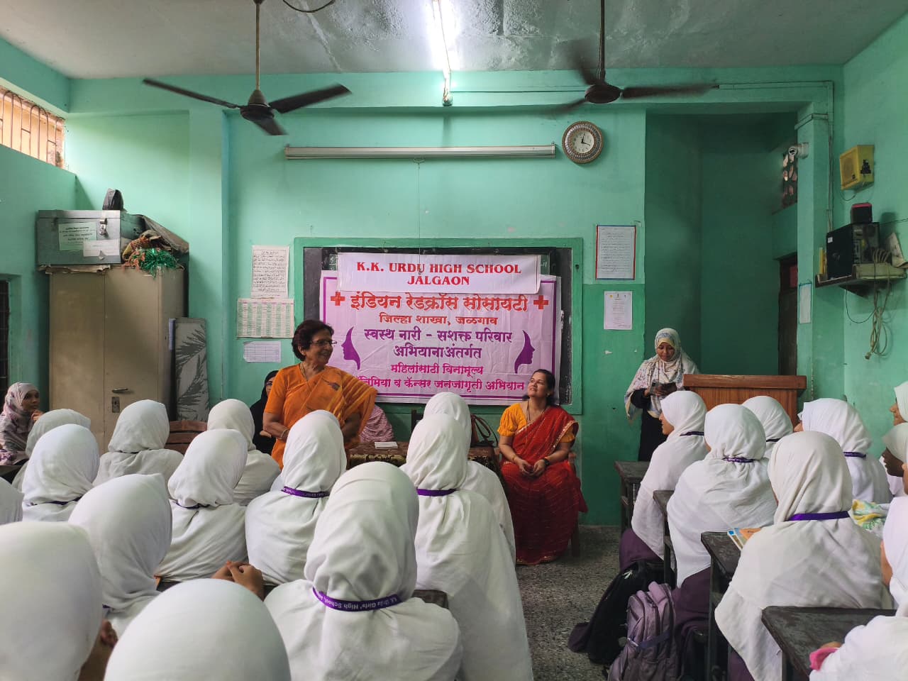 On 12th January 2023 on the occasion of National Youth Day, Red Cross Jalgaon organised sanitary napkins awareness and distribution program to the girls of Yadav Devchand Patil Secondary School